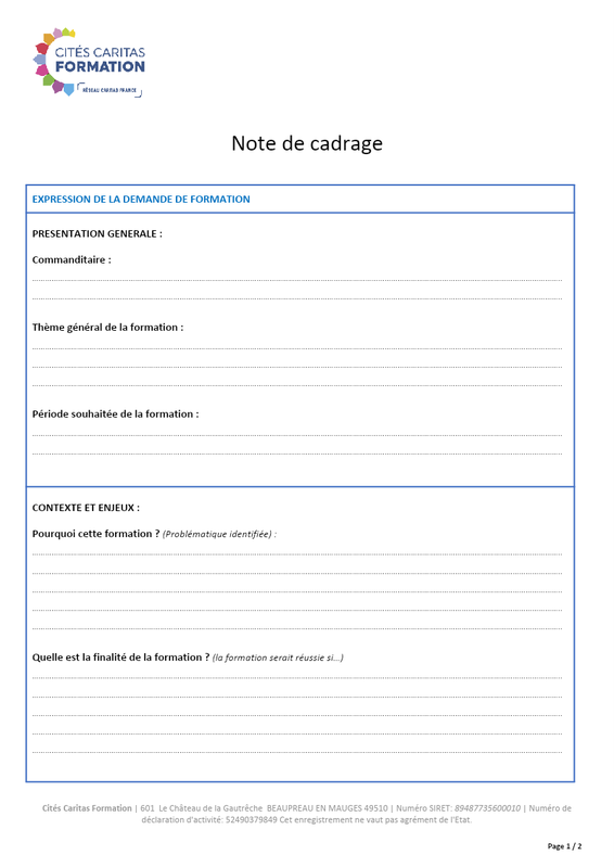 Note De Cadrage - Exemple de trame